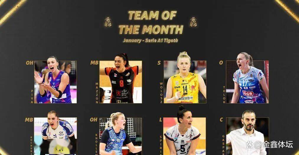 与月度MVP一同揭晓的,还有1月份的最佳阵容。 主教练位置授予了斯坎迪奇队的马尔科·加斯帕里。 在他的带领下,斯坎迪奇在1月份保持了不败战绩,并且在关键战役中击败了强敌诺瓦拉,球队表现稳健。 最佳阵容的二传位置毫无悬念地归属了波兰名将沃沃什,她继续展现着世界顶级的组织能力和比赛掌控力,在1月份同样两次获得单场MVP。 与她搭档担任接应的,是诺瓦拉队的托洛克,她在伤愈复出后迅速找回状态,单月个人斩获93分,是球队最倚重的进攻火力点。